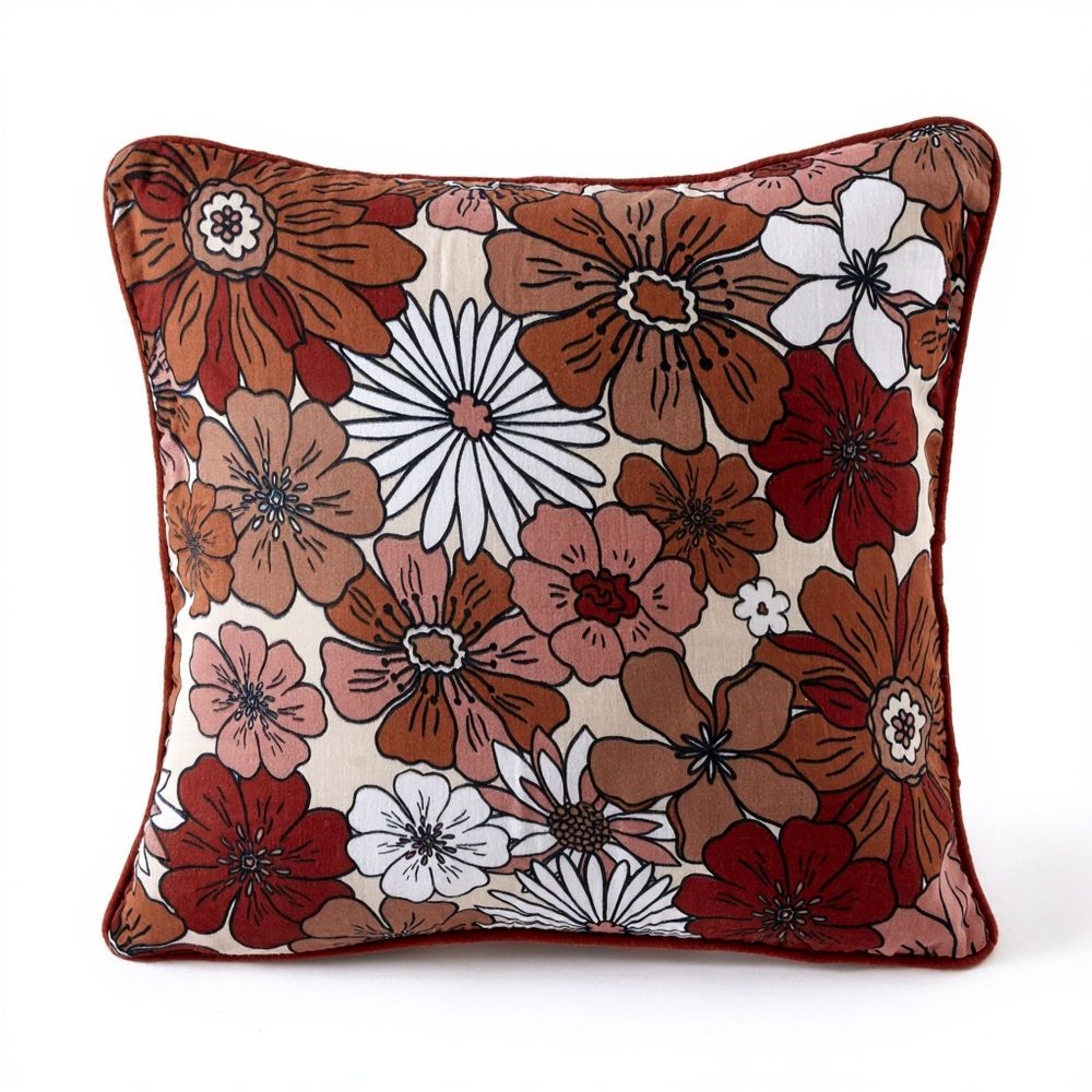 Housse : 100% coton Double gaze de coton 125 gr/m² - Garnissage : 100% polyester - 45x45 cm - Passepoil - Zip - Lavable à 30°C (avec des couleurs similaires) - Essorage doux - Pas de sèche linge - Pas de repassage