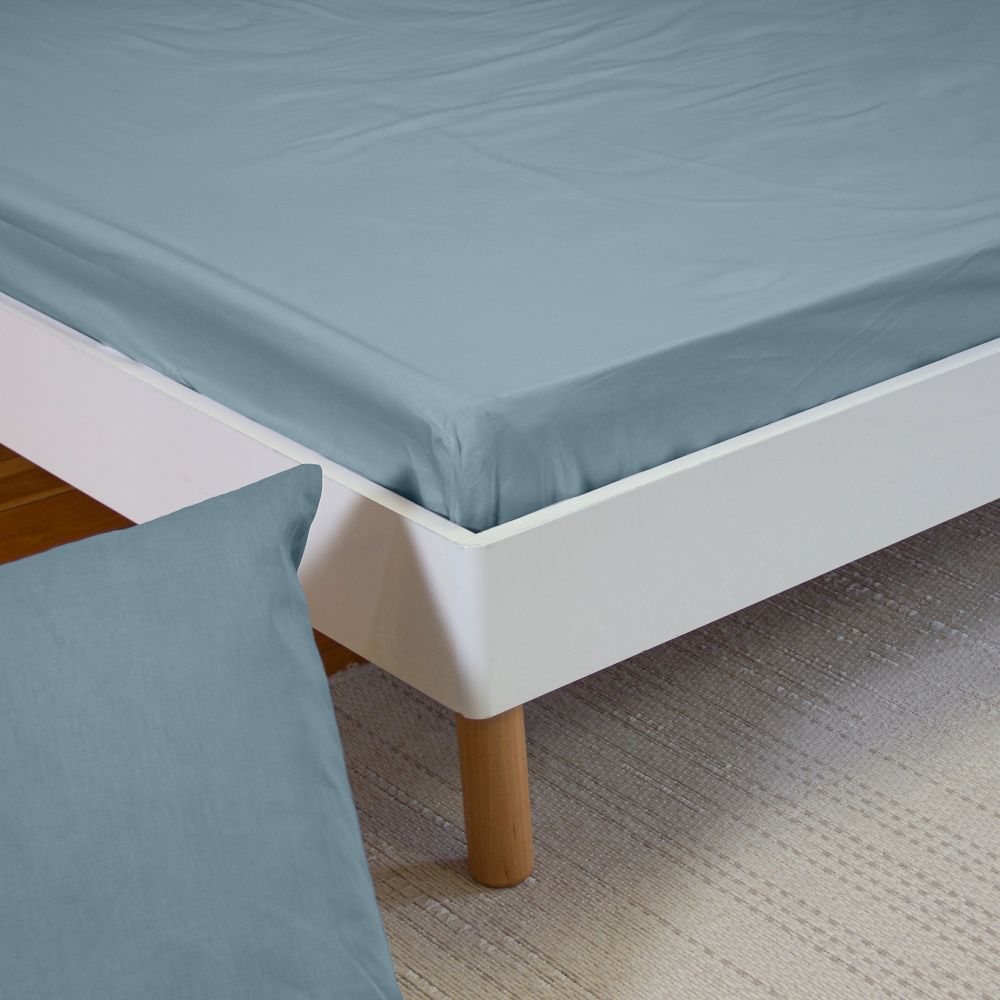 Drap Housse 160x200+30 cm Percale de Coton Bleu Fumé