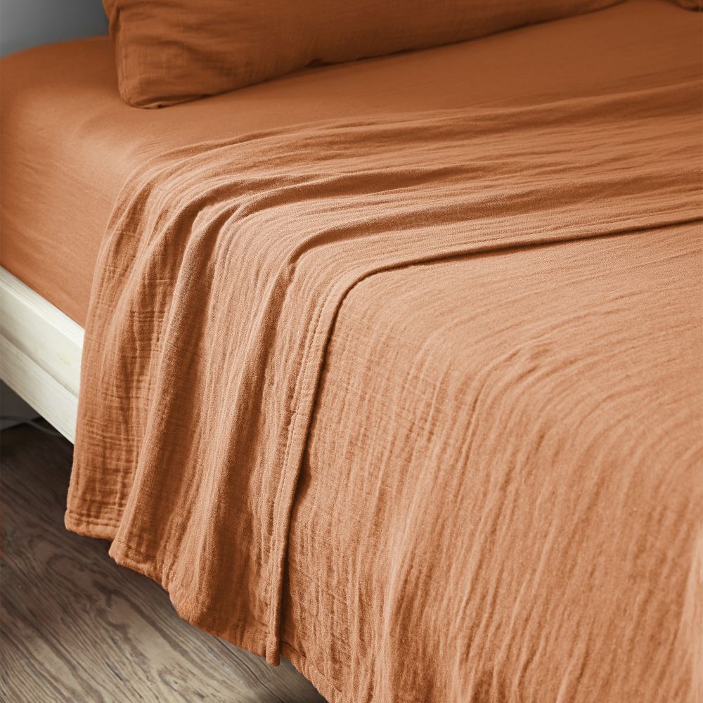 Drap plat 240x300 cm Gaze de Coton Terra Abricot