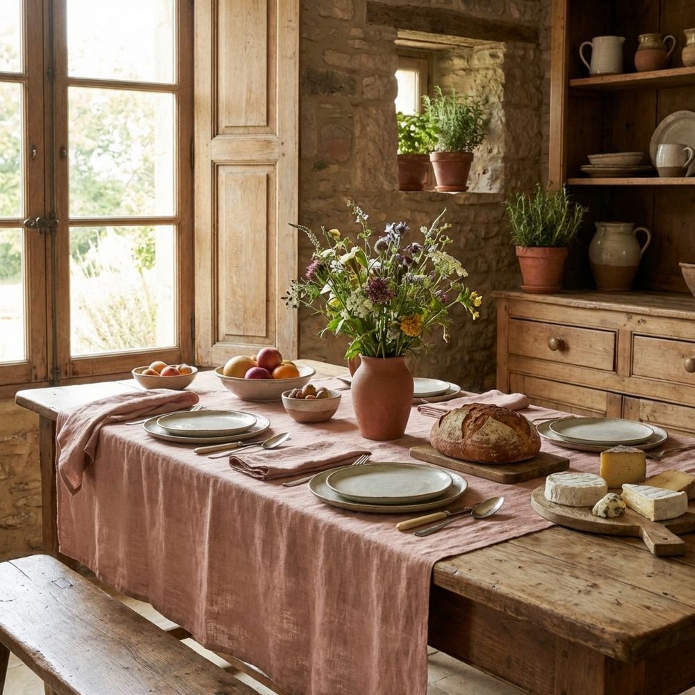 Les avis Nappe rectangle 170x250 cm Lin Rosalie Vieux Rose