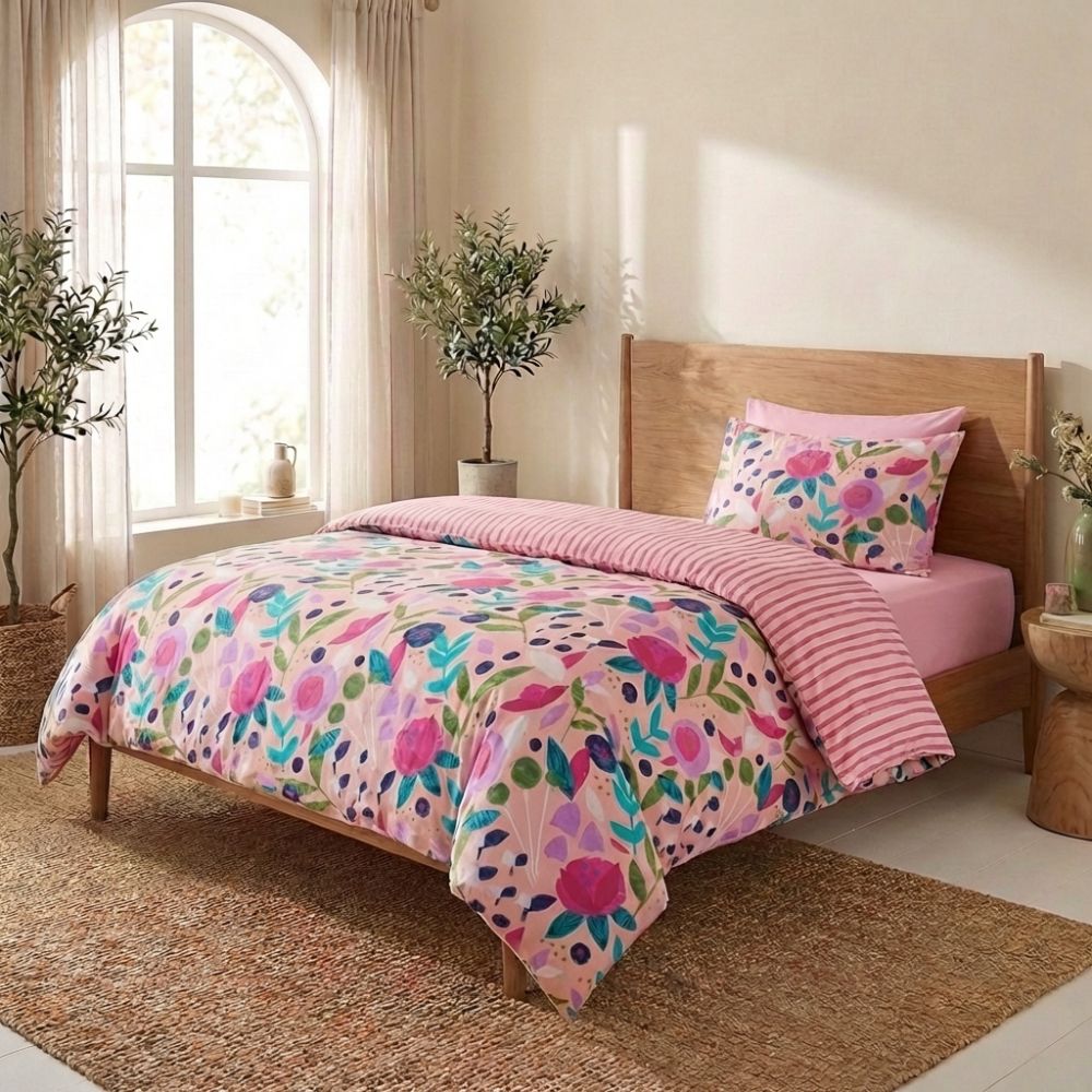 Les avis Parure de lit 140x200 cm Percale de Coton Floral Collage Rose - KATE MERRITT
