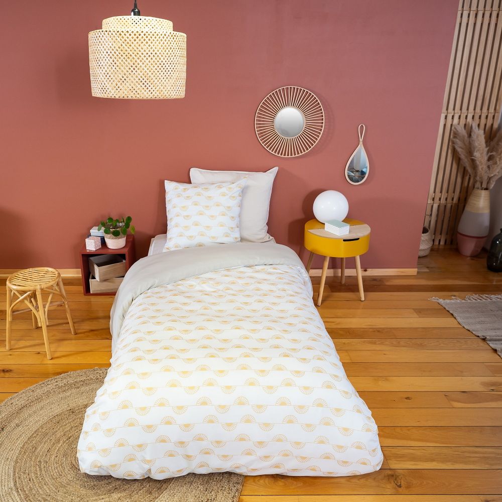 • 1 housse de couette 140x200 cm + 1 taie d'oreiller carrée