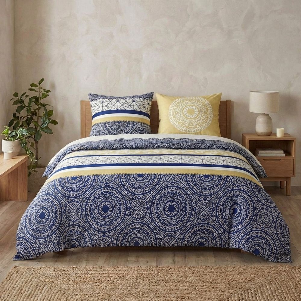 • Parure de lit 100% coton 57 fils - Housse de couette boutons - Taie portefeuille - prélavage avant utilisation - respectez les instructions de lavage indiquées sur l'étiquette produit - Lavable à 40°C - laver et repasser sur l'envers afin de protéger les couleurs - un séchage à l'air libre réduira fortement l'usure du linge - repassage déconseillé.