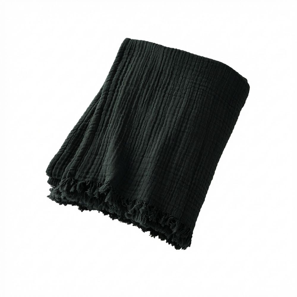 • 100% Coton Quadruple gaze de coton 220 gr/m² - 130x160 cm Petites franges Lavable à 40° C (avec des couleurs similaires) - Essorage doux - Sèche linge possible - Pas de repassage
